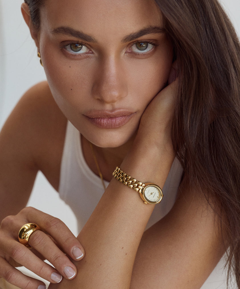 Rich, warm, and softly luminous – our signature gold finish. Designed to make a subtle statement, each piece is plated over high-quality stainless steel for enduring wear.