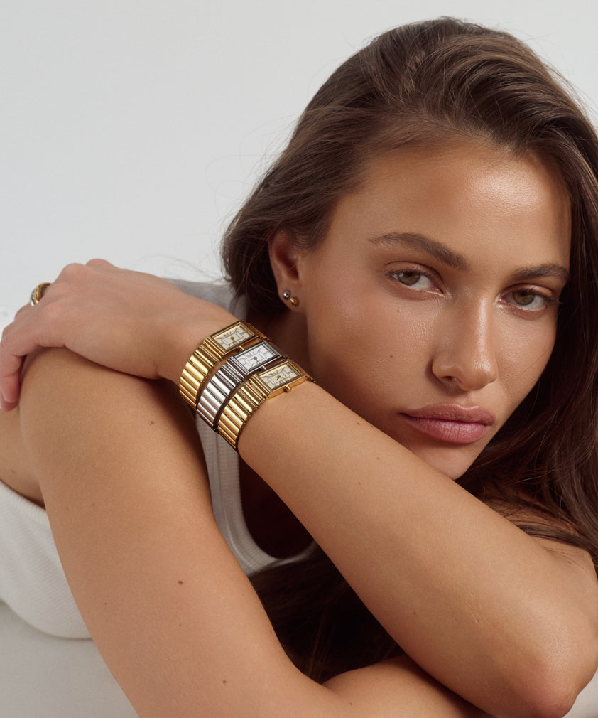 A balance of contrast and harmony. Each piece is finished with 18k gold detailing over polished stainless steel – bringing dimension to classic silhouettes.