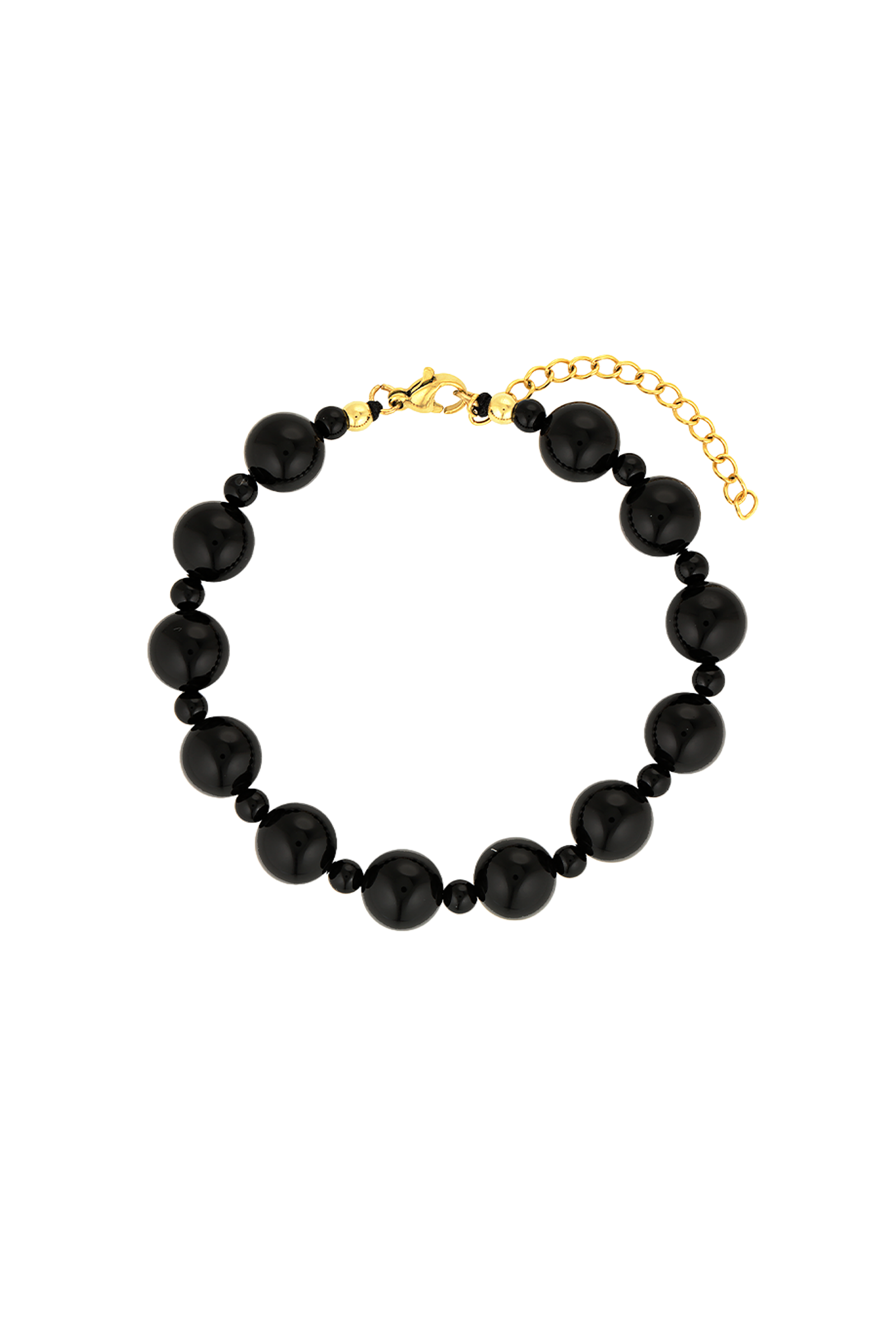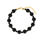 Crafted with round black agate beads and accented by a delicate gold chain and clasp, it brings effortless elegance to any look while allowing for an adjustable fit.