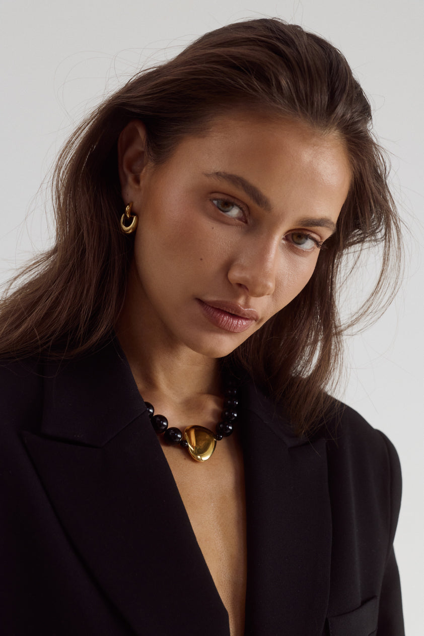A petite statement with sculptural appeal. The Gabrielle Earrings feature interlocking, high-polish curves crafted in 18k Premium Gold Plated Stainless Steel. Versatile enough for both a subtle statement or a stacked moment.
