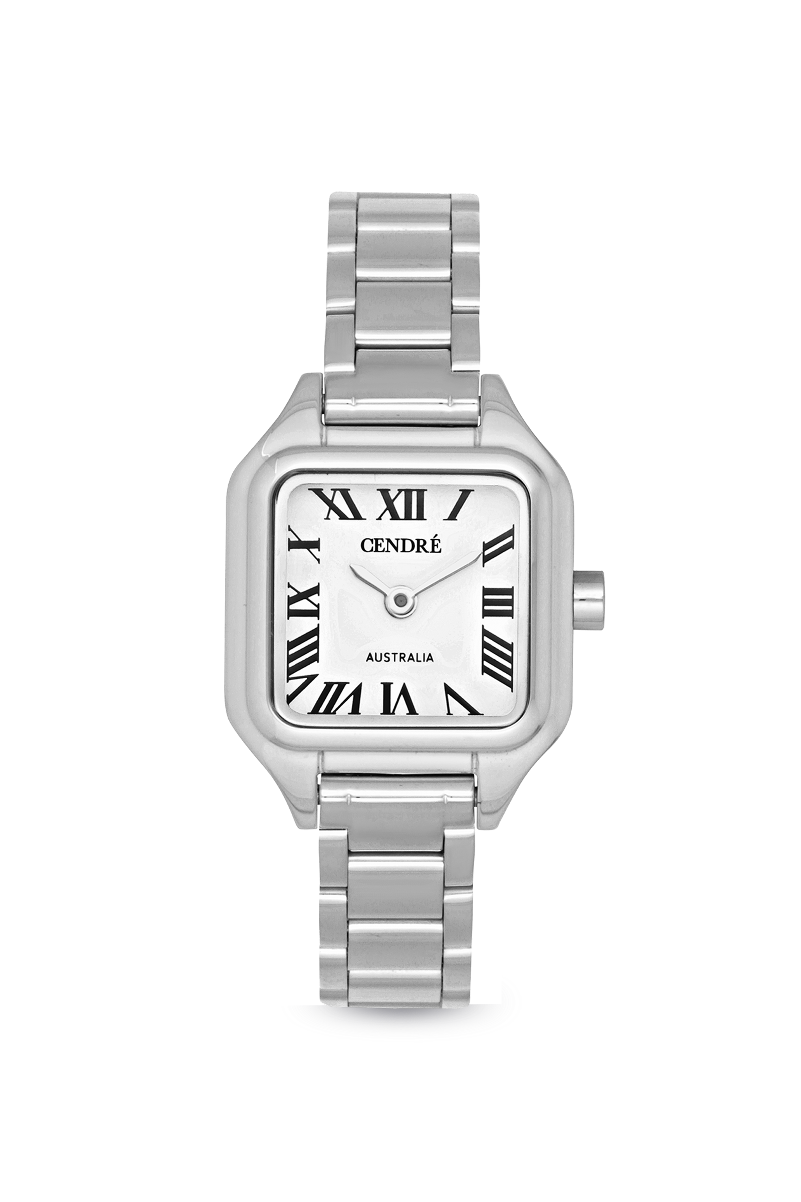 Crafted from High Polished stainless steel, featuring a square face, roman numeral dial and an elegant jubilee-style band.