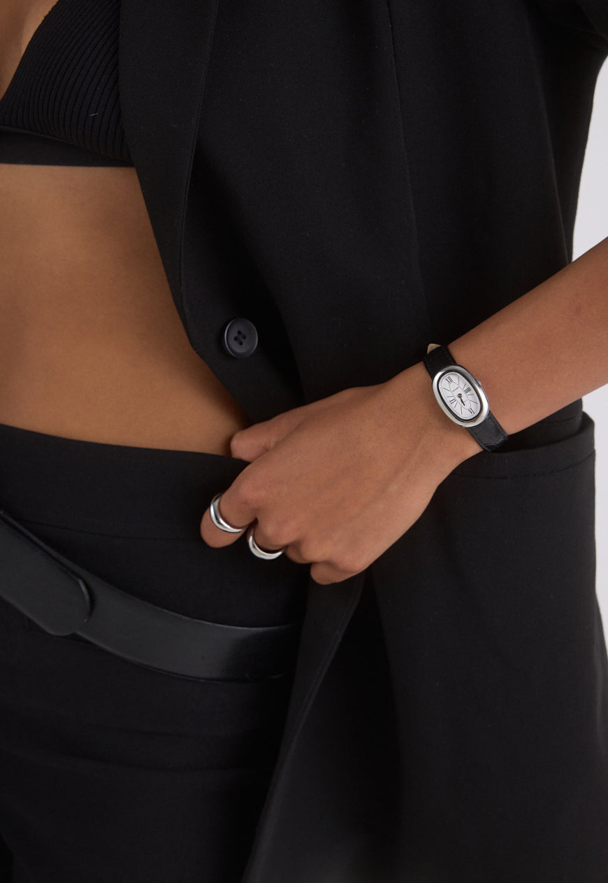 Presenting: Bridgette. The latest addition to our bespoke watch series. With it’s bold oval silhouette, Roman Numeral dial, hidden crown etched with our signature monogram and genuine Italian leather band - The Bridgette is a proud statement of sophistication and versatility, seamlessly blending classic charm with modern refinement.