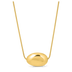 The Sloane Necklace is a rounded, 18k Gold polished pendant strung on a delicate chain. A sculptural piece that transitions seamlessly from day to night.