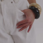 The Charlotte Bangle features a polished cream resin finish with clean, sculptural curves. Effortless on its own, elevated when stacked.