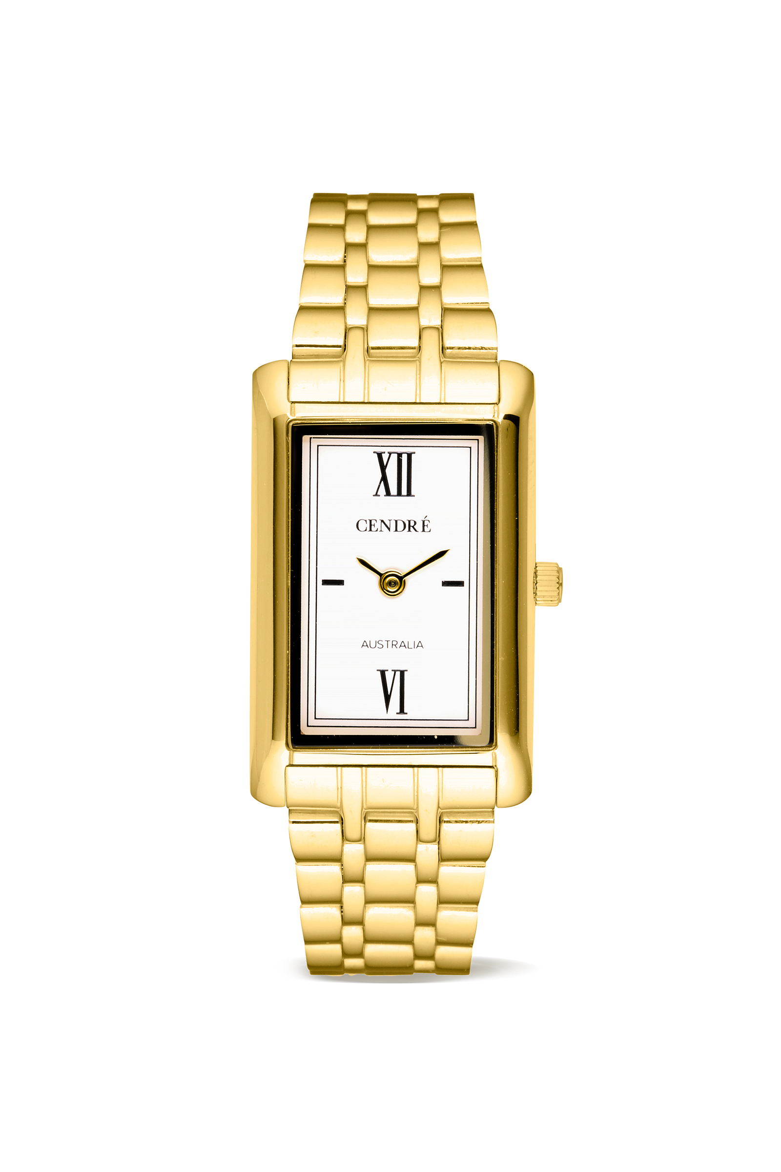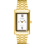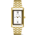 Crafted from 18k premium gold plated stainless steel, featuring a rectangular silhouette and signature roman numeral dial.