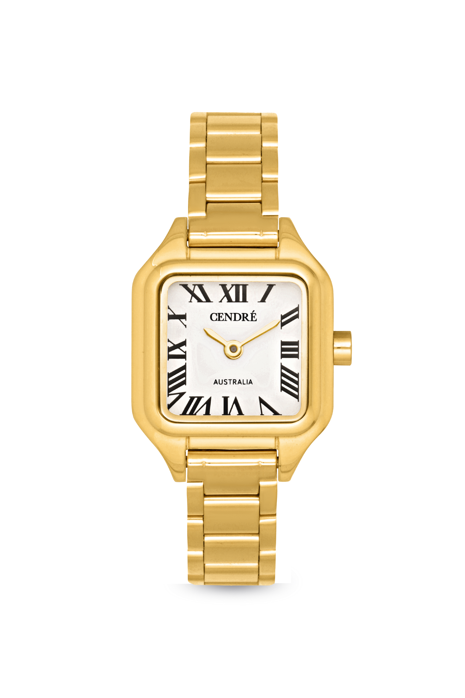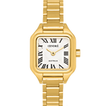 Crafted from 18k premium gold plated stainless steel, featuring a square face, roman numeral dial and an elegant jubilee-style band.