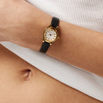Super delicate and petite gold watch. Lovely design and really enjoy the flexibility of it coming with its own adjustment kit.