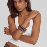 The Ellegra Bangle features a polished chocolate-toned resin finish with clean, sculptural shapes. Effortless on its own, elevated when stacked.