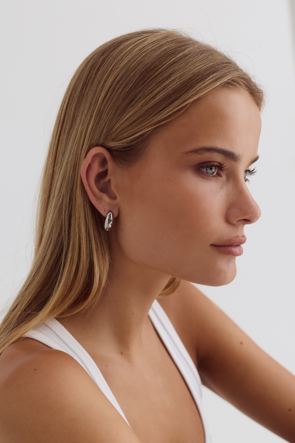 The Enna Earrings feature a unique teardrop shape crafted in Premium High Polish Stainless Steel. Perfectly sized and lightweight, they’re designed for effortless everyday wear.