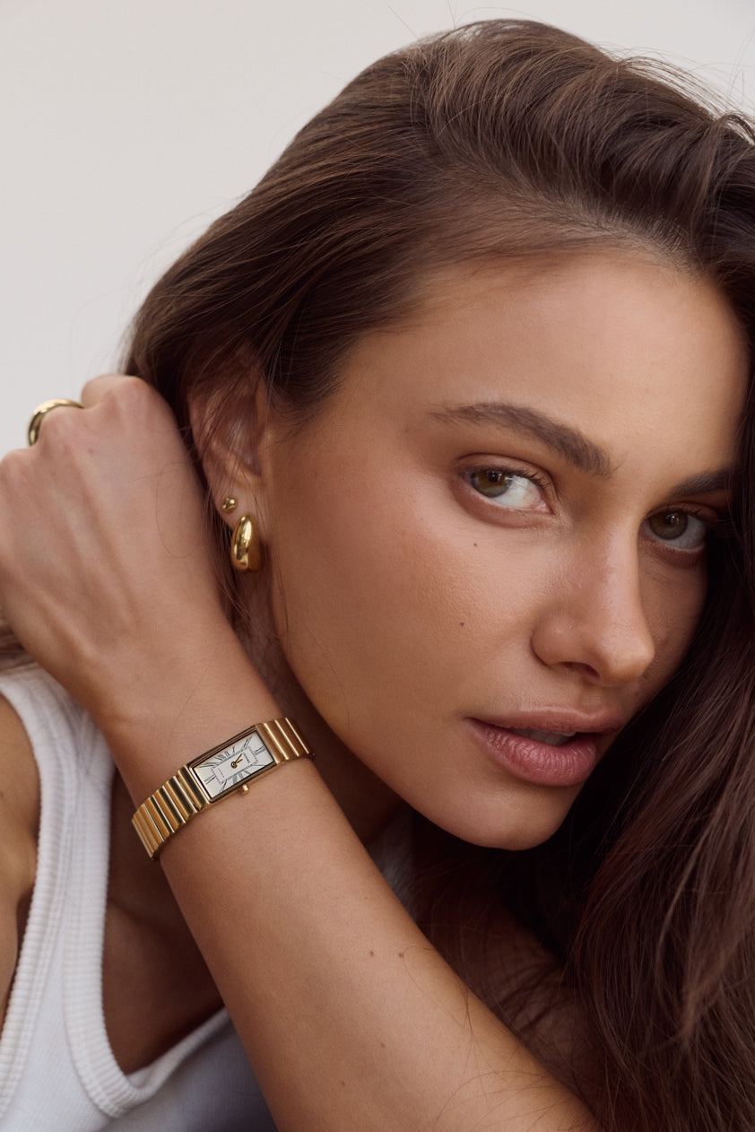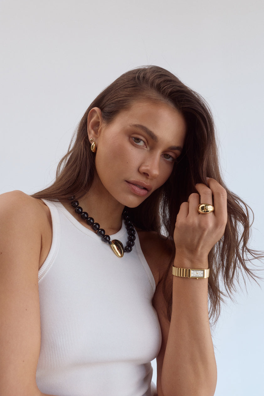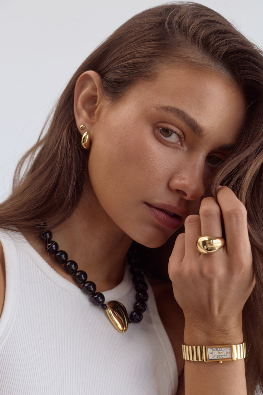 Rich, warm, and softly luminous – our signature gold finish. Each piece is plated over high-quality stainless steel for enduring wear.