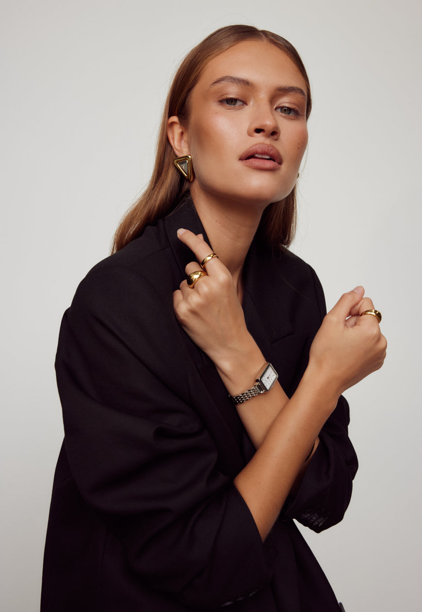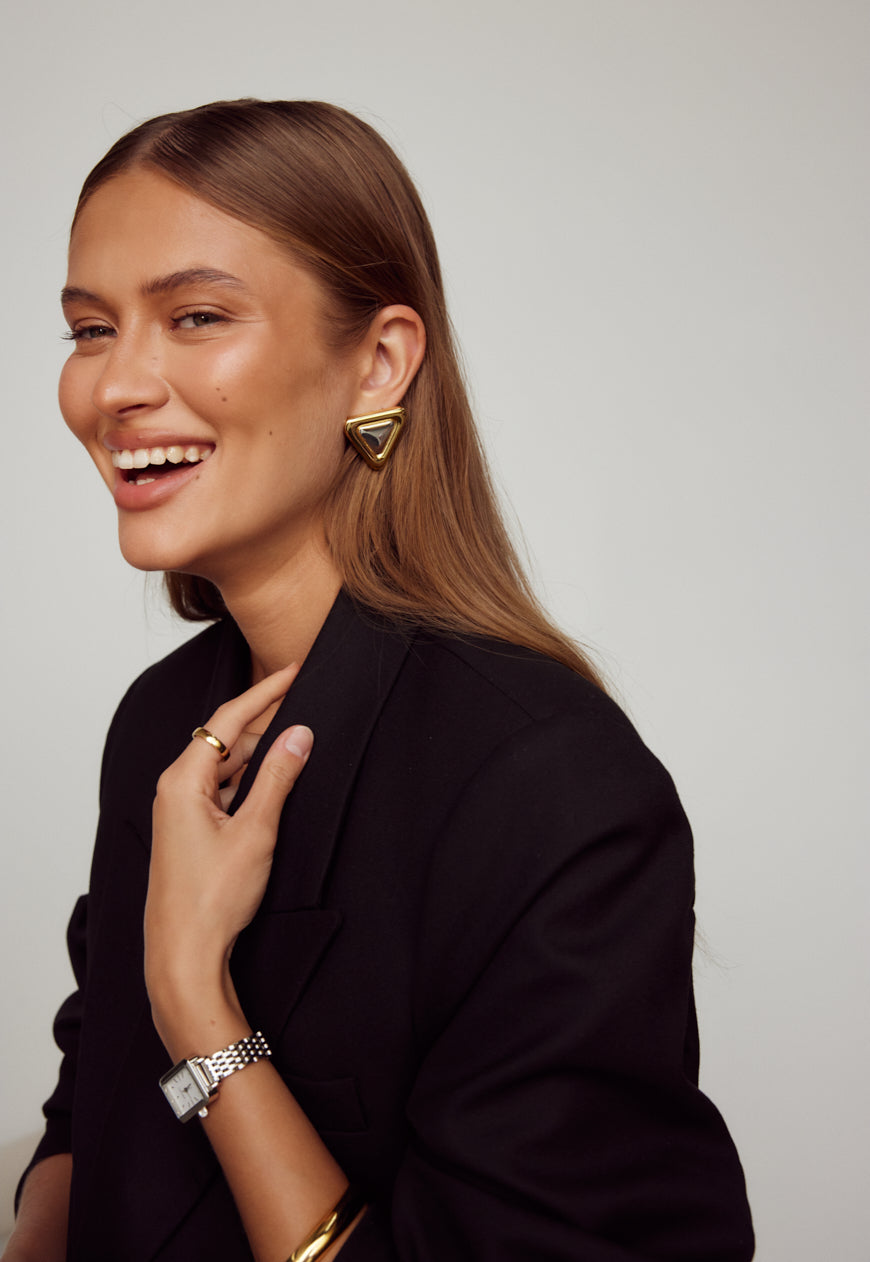 Rich, warm, and softly luminous – our signature gold finish. Designed to make a subtle statement, each piece is plated over high-quality stainless steel for enduring wear.