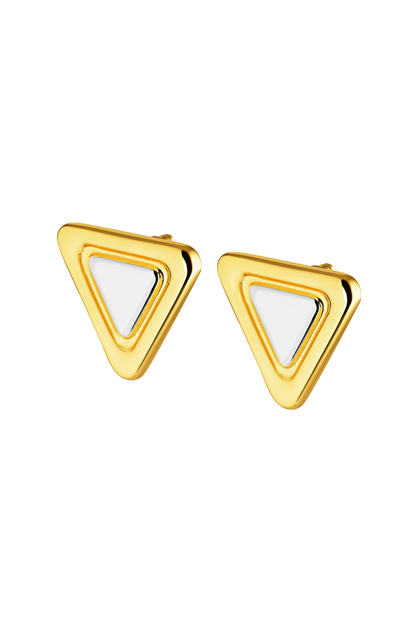 Named after the renowned centre of art in Paris, our Louvre Earrings are destined to be the focal point of your accessories collection. Featuring a distinctive double triangular design crafted from 18k gold-plated stainless steel & Sterling Silver, this two-tone style is set to become a staple in your jewellery rotation.