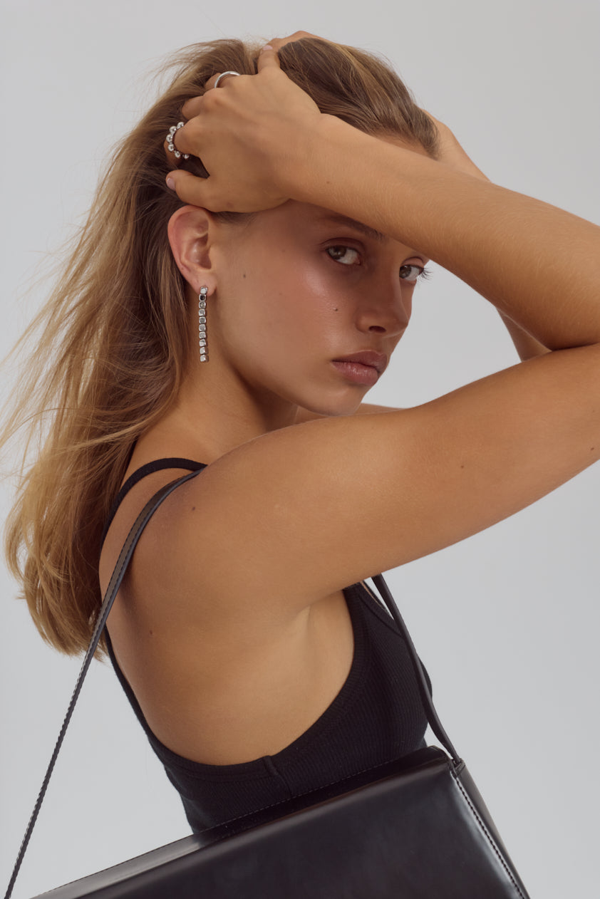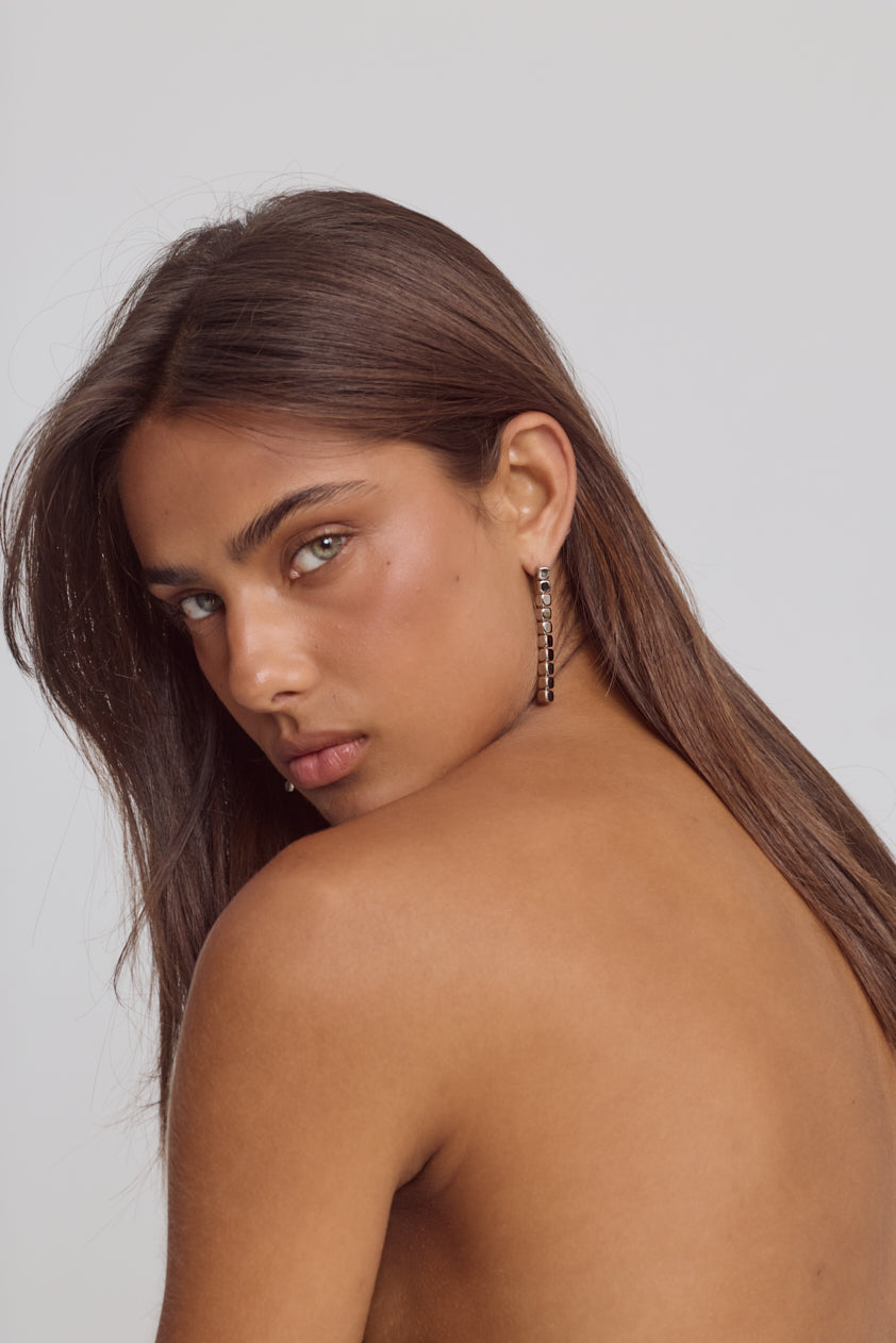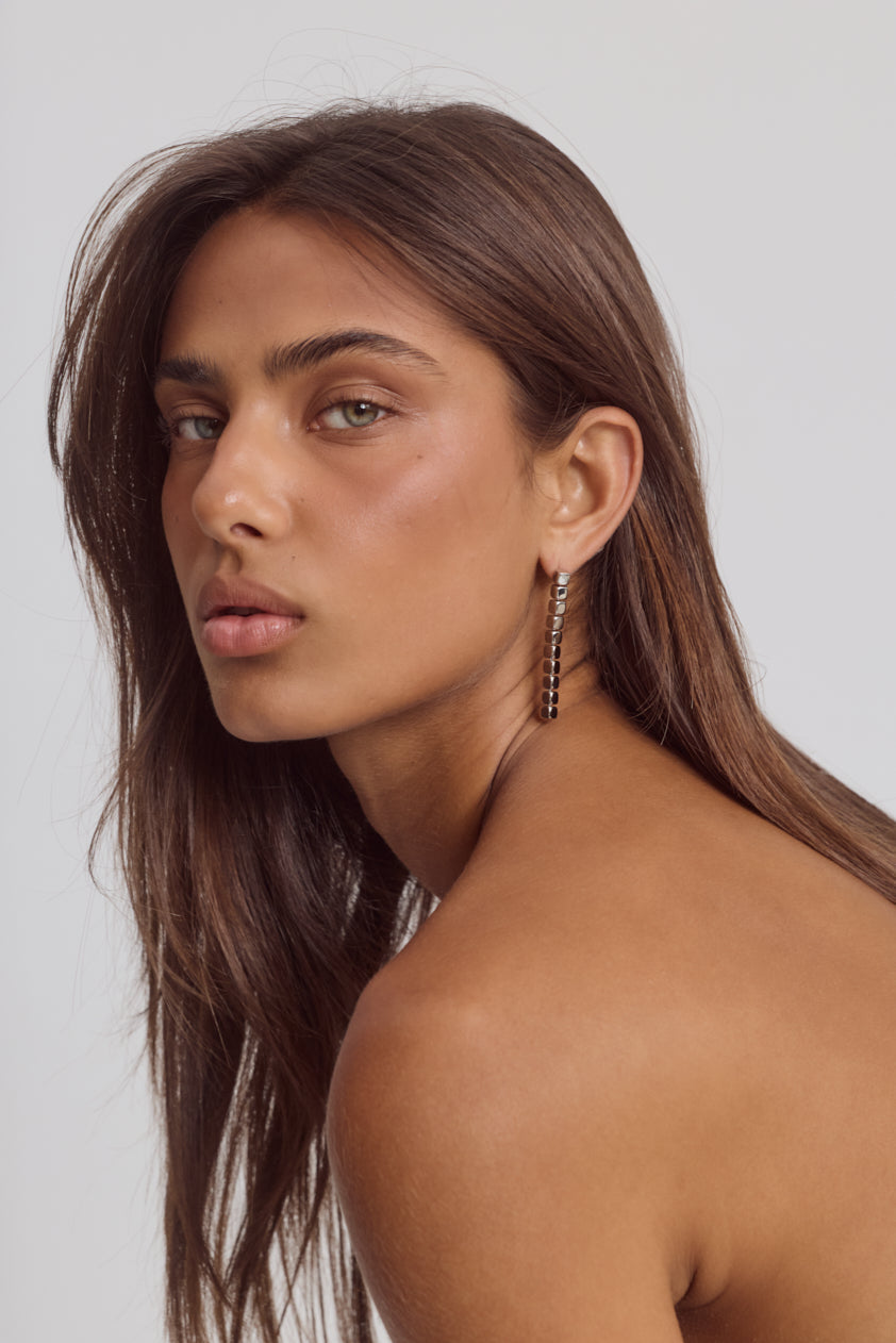 The Rue Earrings feature a sleek vertical drop of rectangular silhouettes, anchored by a minimalist stud. Crafted from premium stainless steel, their high-shine finish brings a modern edge to everyday styling.