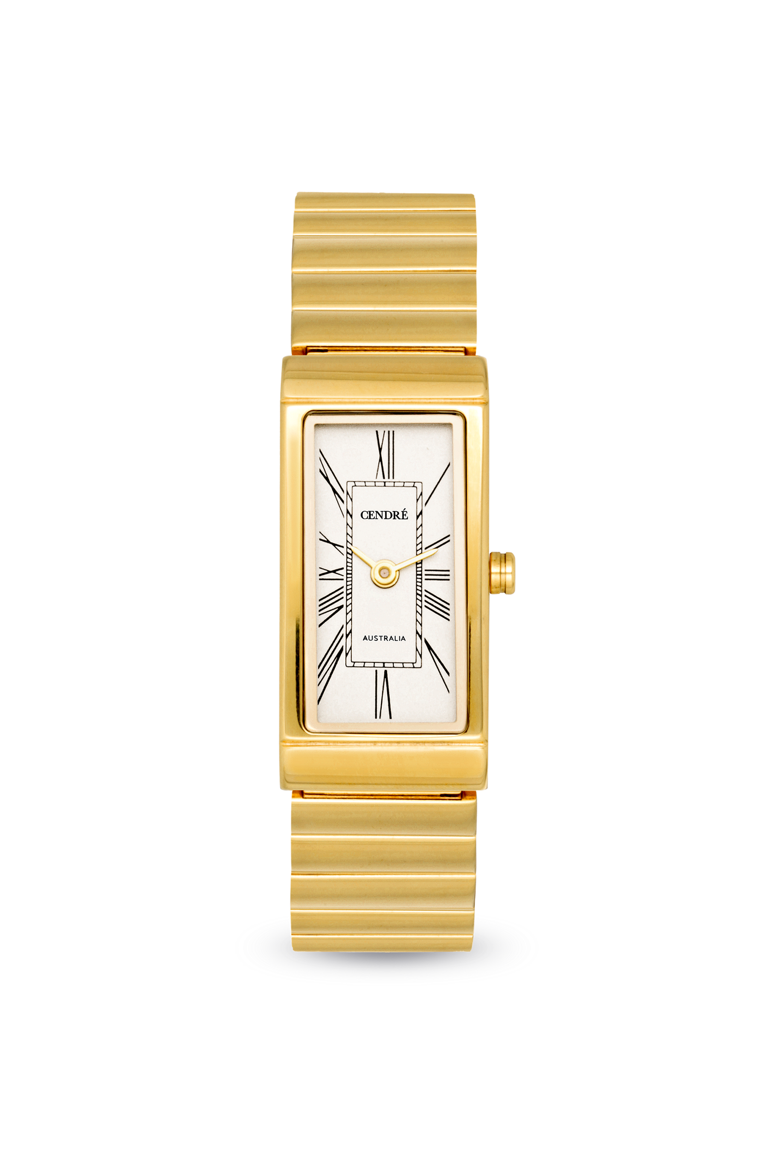 Crafted from 18k premium gold plated stainless steel, featuring a sleek band that feels both classic and modern, paired with a rectangular face and Roman Numeral dial.